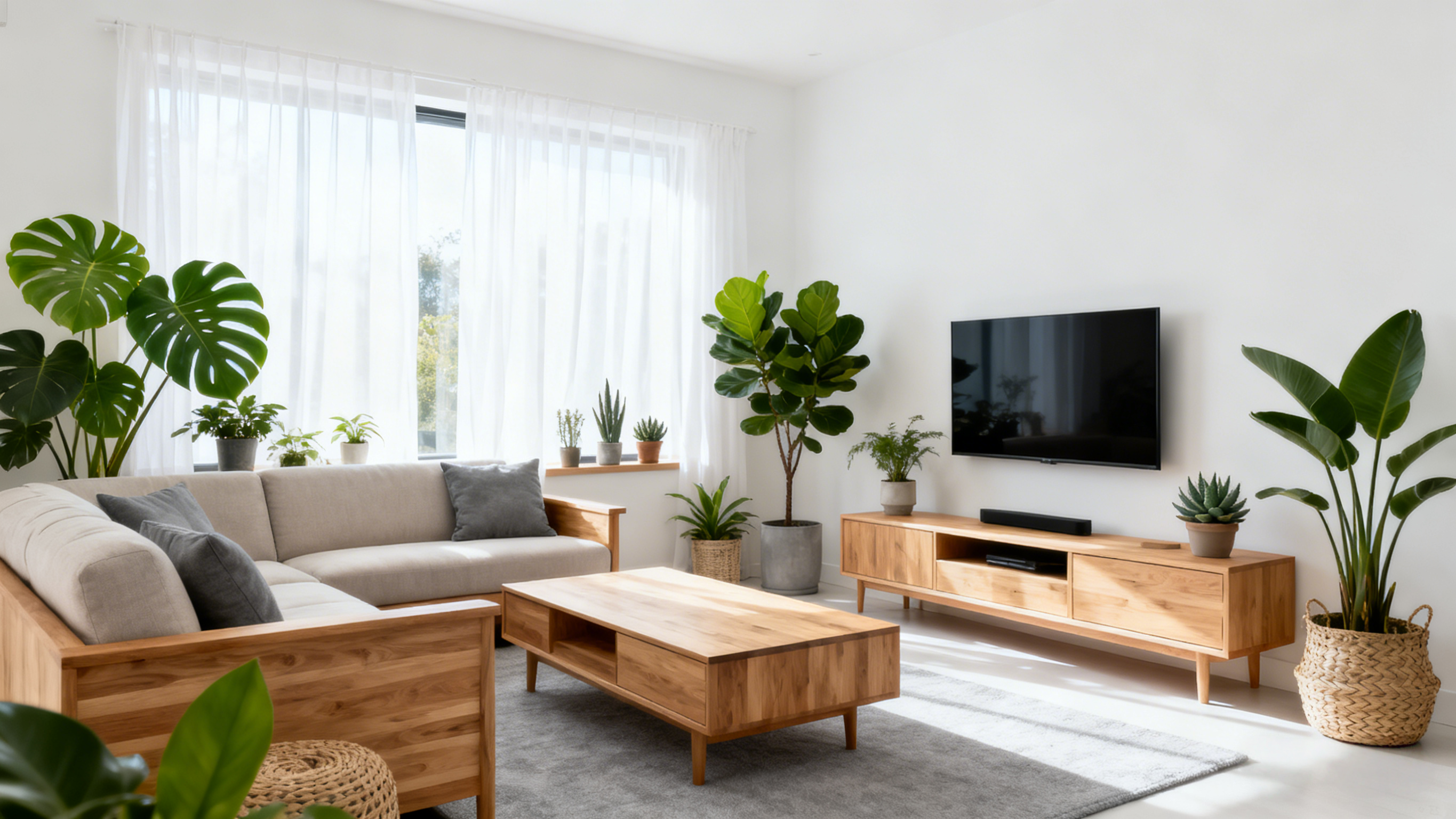 Meuble TV en bois avec tiroirs et étagères